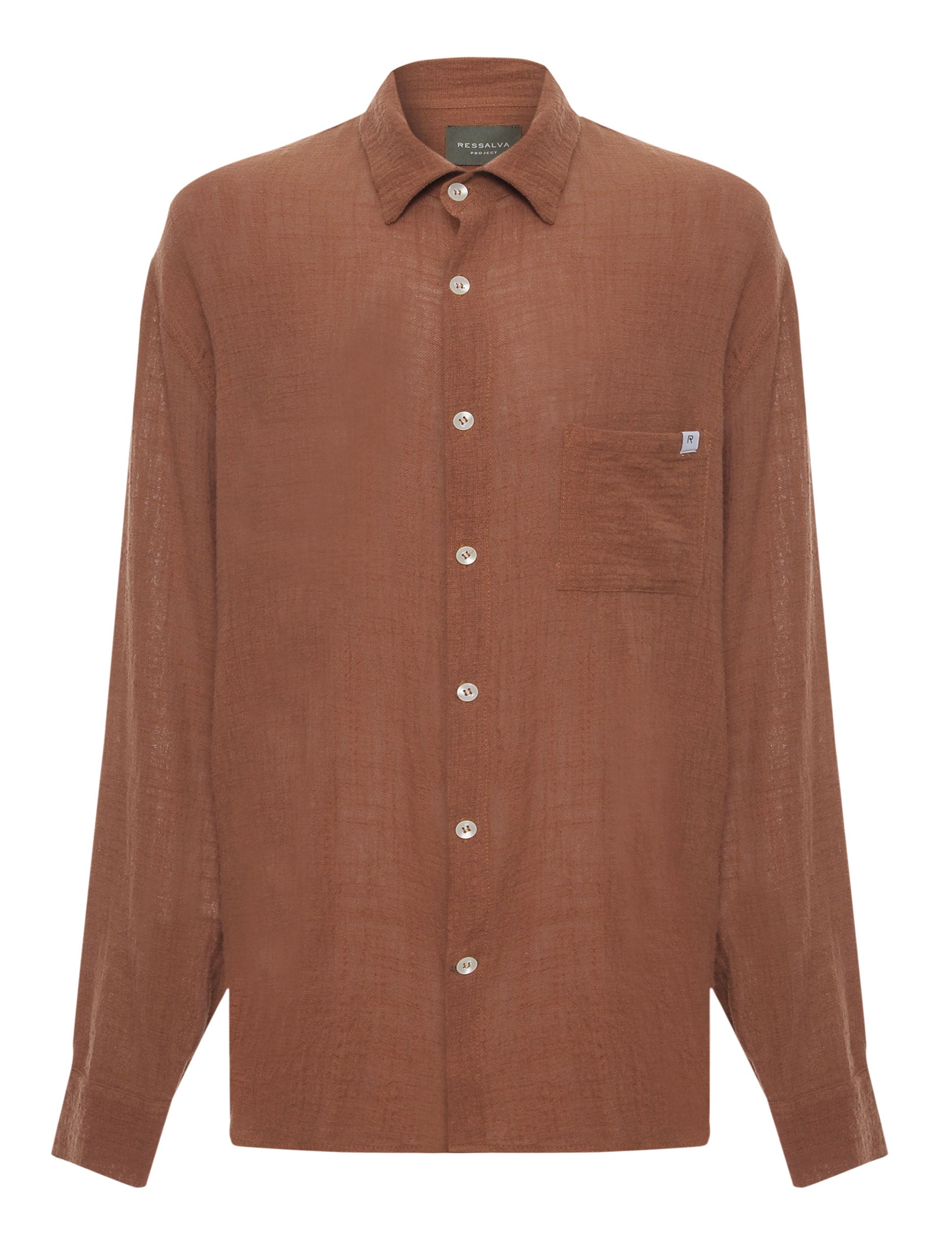 Chemise unisexe, avec une coupe longue et ample et un pantalon droit, avec une taille élastique et un cordon de serrage, et une poche invisible sur le devant.