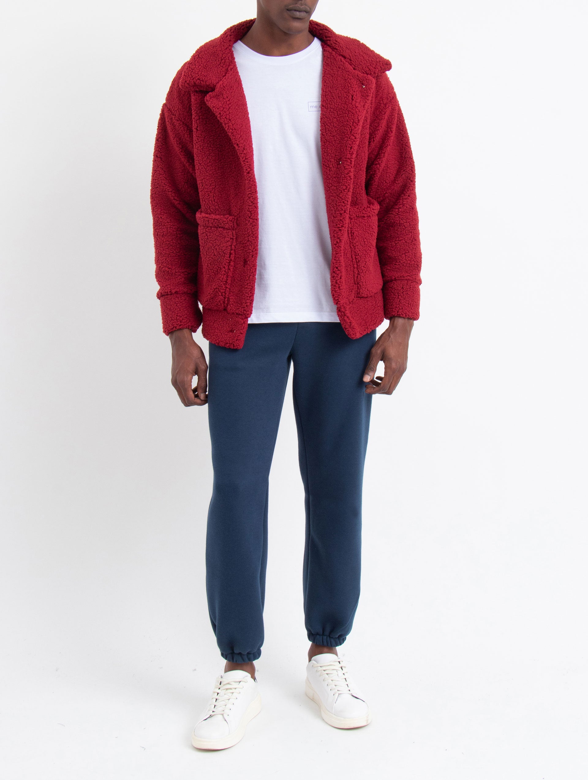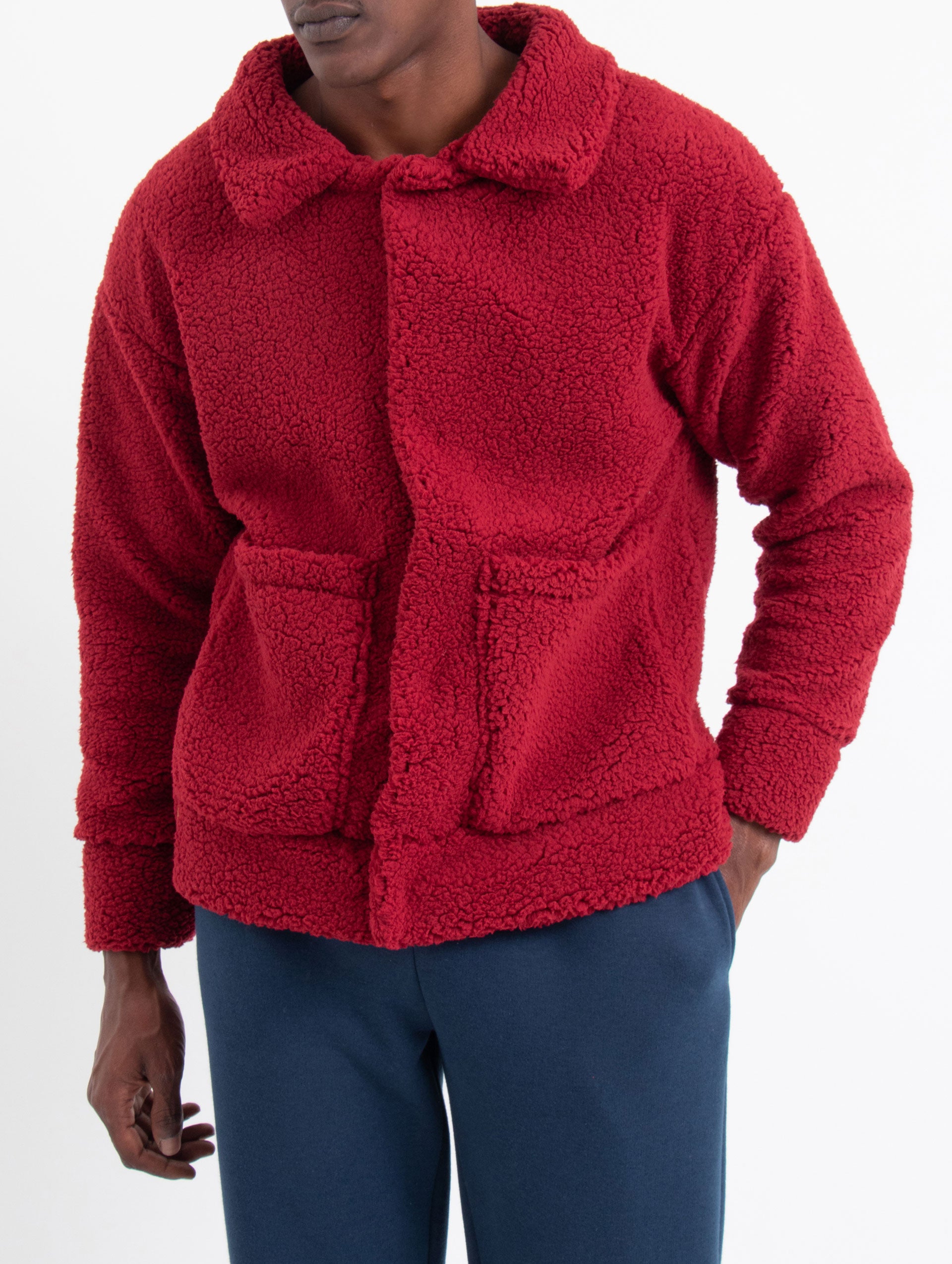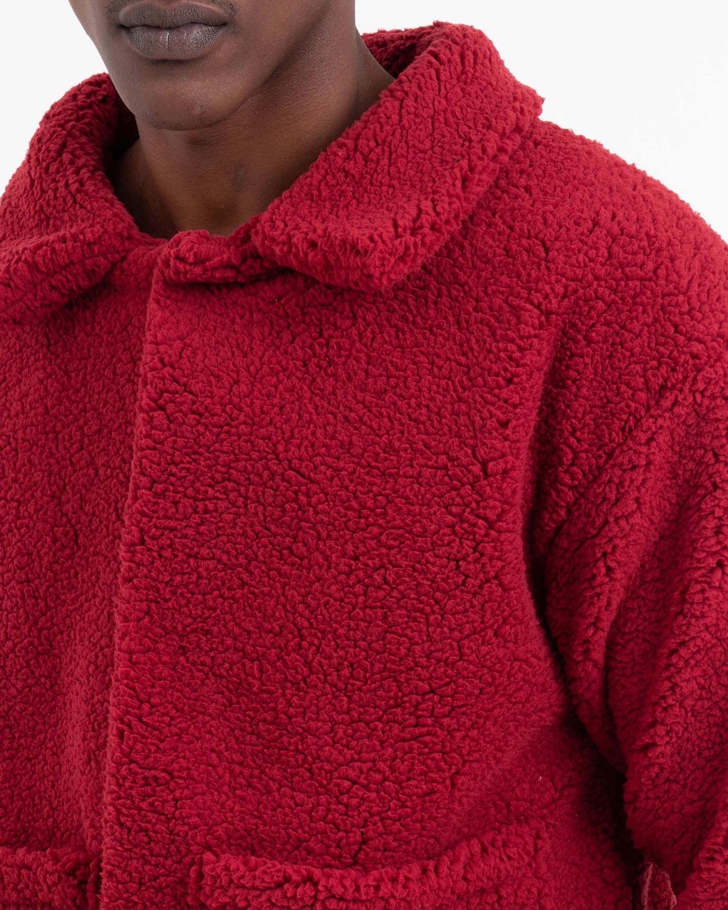 Veste unisexe oversize en alpaga. Poches avant et fermeture par crochets invisibles.