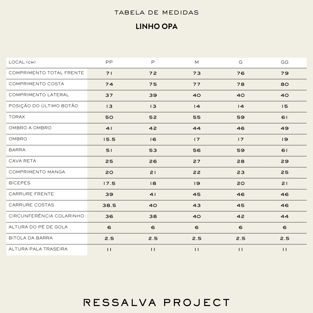 A modelagem ampla oferece caimento fluido e elegante, garantindo conforto absoluto e leveza. Uma peça que une versatilidade, autenticidade e sofisticação natural, perfeita para looks do dia a dia ou composições mais elaboradas.
