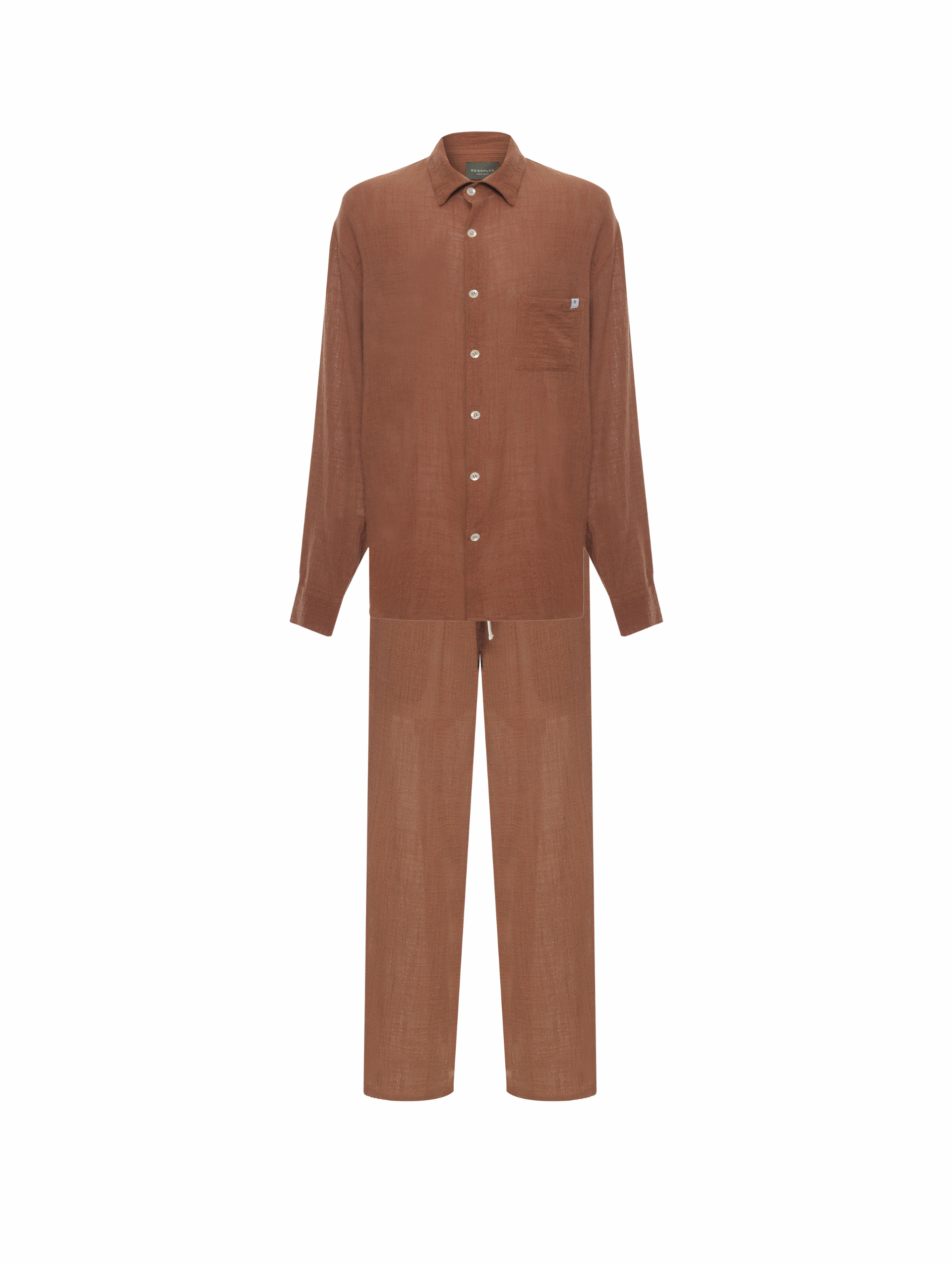 Conjunto unissex, tem modelagem ampla e longa e calça reta. Elástico na cintura e cordão. Bolso invisível na frente.